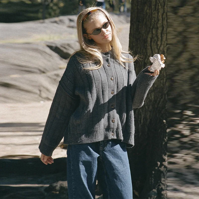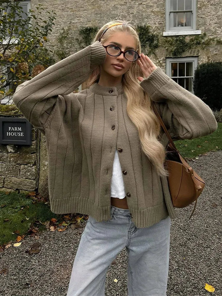 The Button-Front Knit Cardigan with Pockets is so cozy. It feels like a warm hug and the pockets are actually functional, which I love.