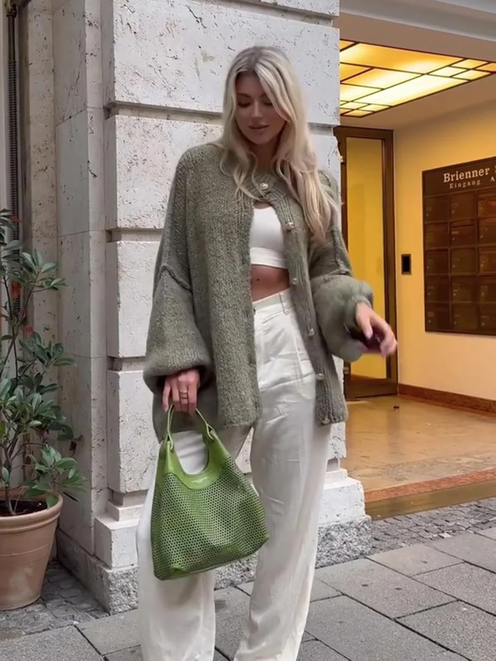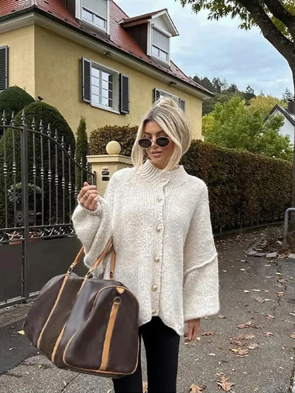 The Button-Front Knit Cardigan with Pockets is so cozy. It feels like a warm hug and the pockets are actually functional, which I love.